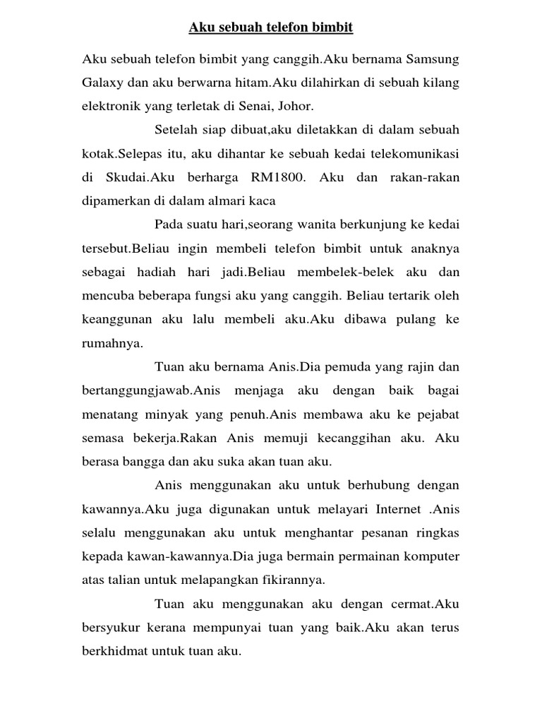 Aku Sebuah Telefon Bimbit Karangan Pdf